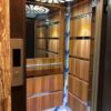 در نمای داخل دیواره ها و پوشش ها نیمی از استیل و نیم از ورق ام دی اف یا ورق های دیگری مثل هایگلاس استفاده شده است به همین علت آن را کابین MDF استیل می گوید که ترکیبی بین استیل و ام دی اف در آن کار شده است و زیبایی خاصی آنرا جلوه داده است.